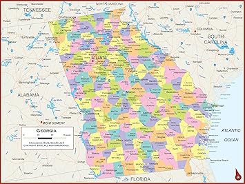 Amazon Com Georgia County Map 36 W X 36 H Office Products