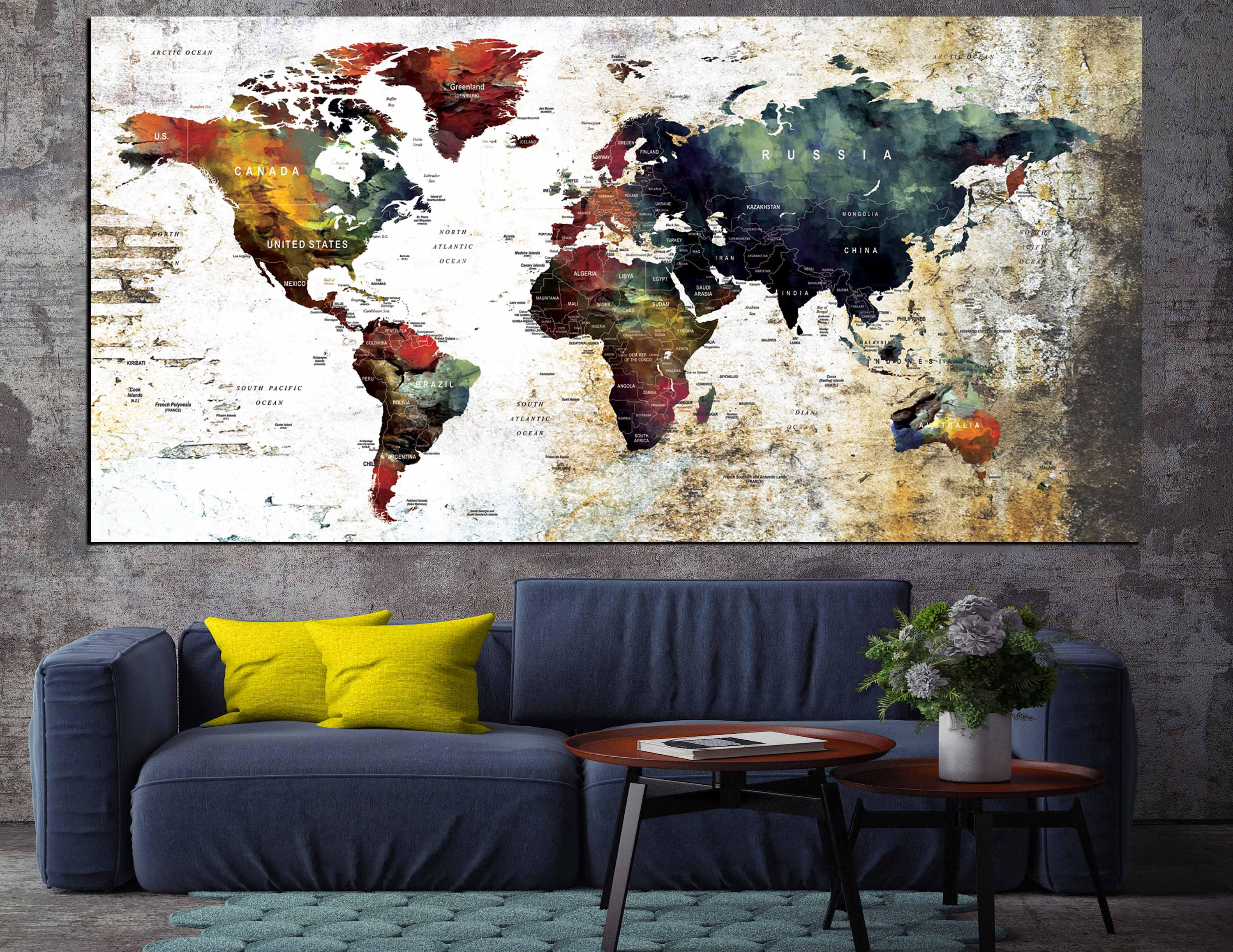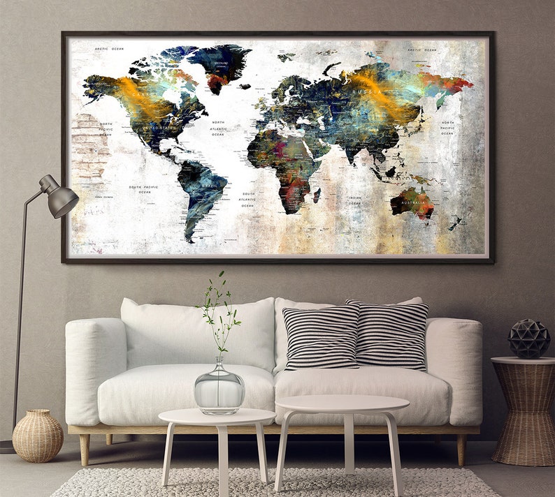 World map wall art large canvas push pin travel map adventure awaits decoration object home office living room decor wallartscanvas. With our ever expanding selection you can freely choose from many world maps wall murals that will bring read more. Animals of the world from 53 99. Gallery wrapped with.