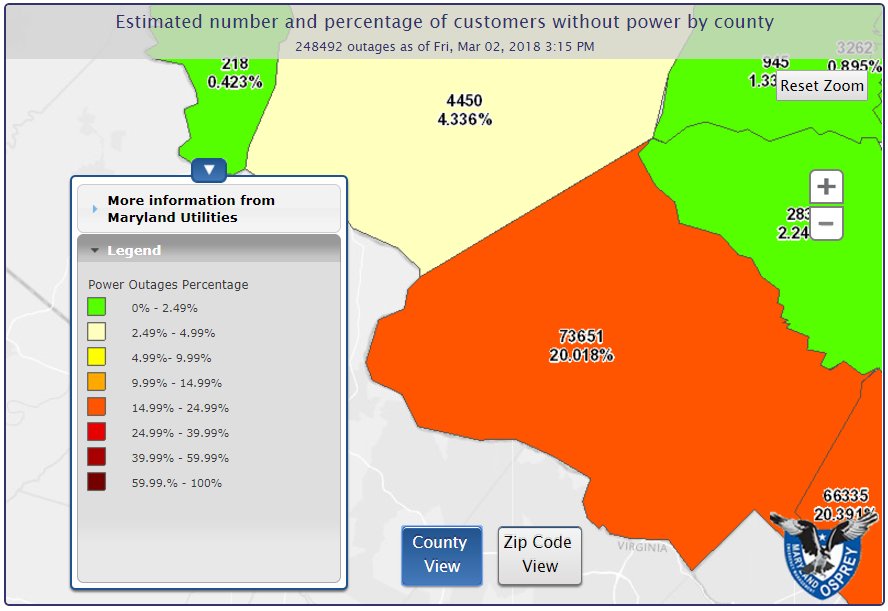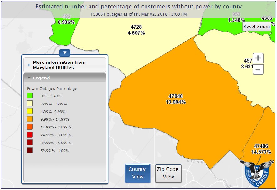 Preparing for power outages. View the 24 7 power center outage map for additional information about outages in your area. Learn how we restore power when an outage occurs and. The chart represents the total estimated power outages in maryland for the most recent.