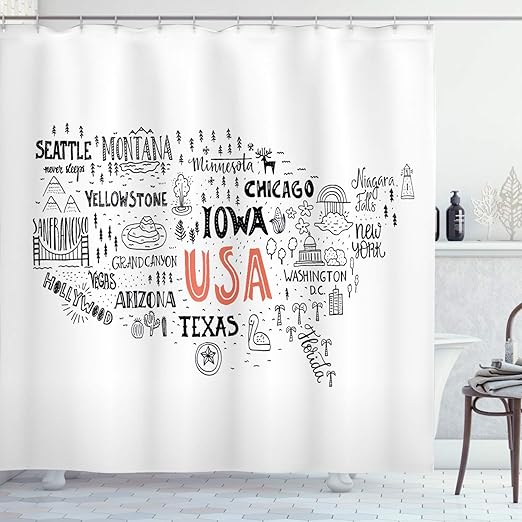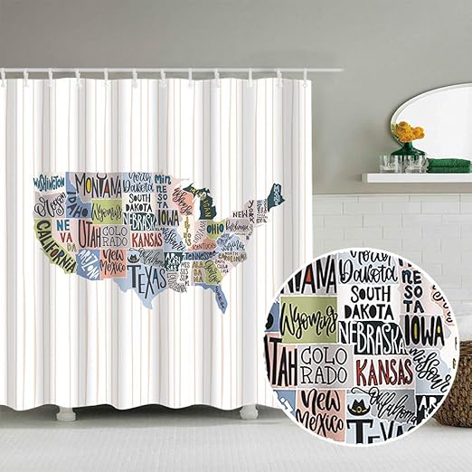 Jawo kids cartoon united states map shower curtain for bathroom children s fun facts geography usa map profession waterproof polyester fabric bath curtains decor with 12pcs hooks 69 w x 72 h 4 8 out of 5 stars 10. Get it as soon as mon jul 13. Free shipping on orders over 39.