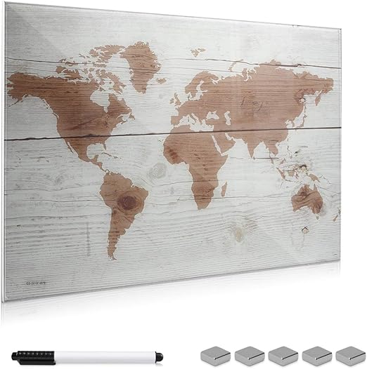 Franken Glass Magnetic Board World Map 550 X 800mm White Black